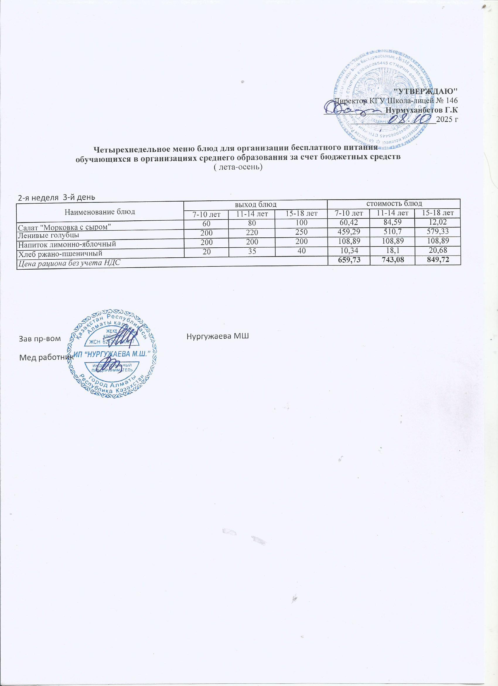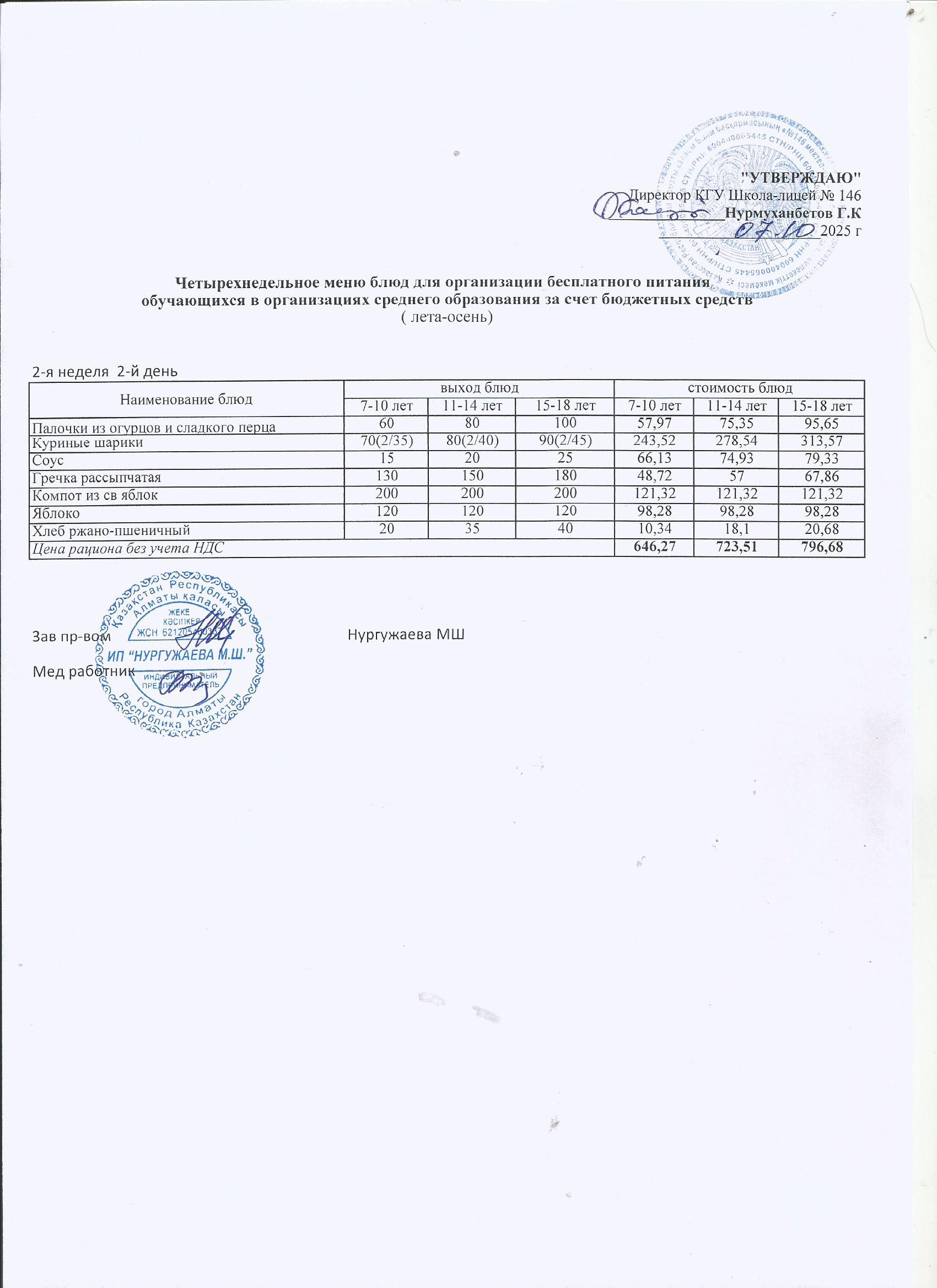 » Ас мәзірі (қазан айы 2 апта)