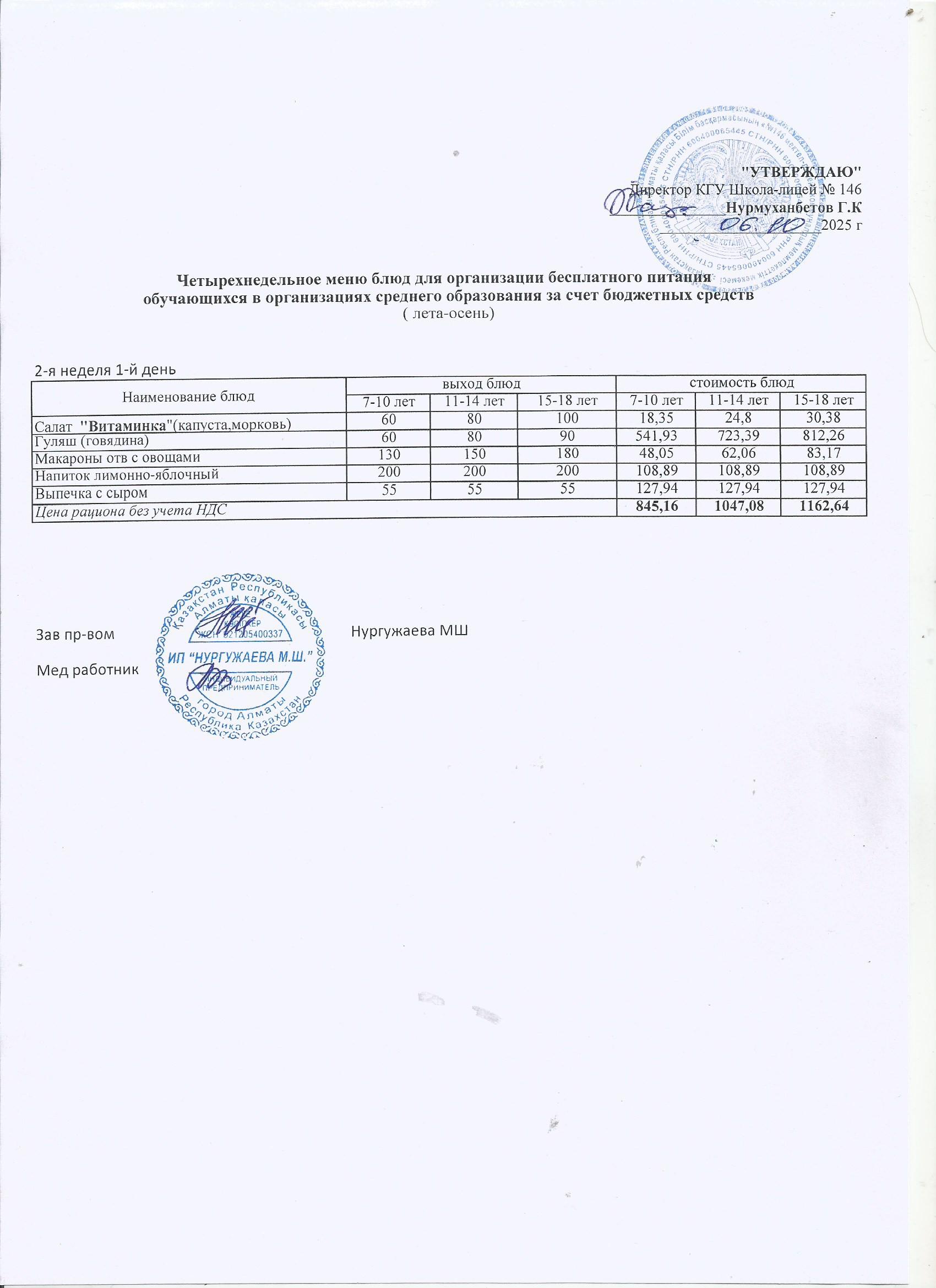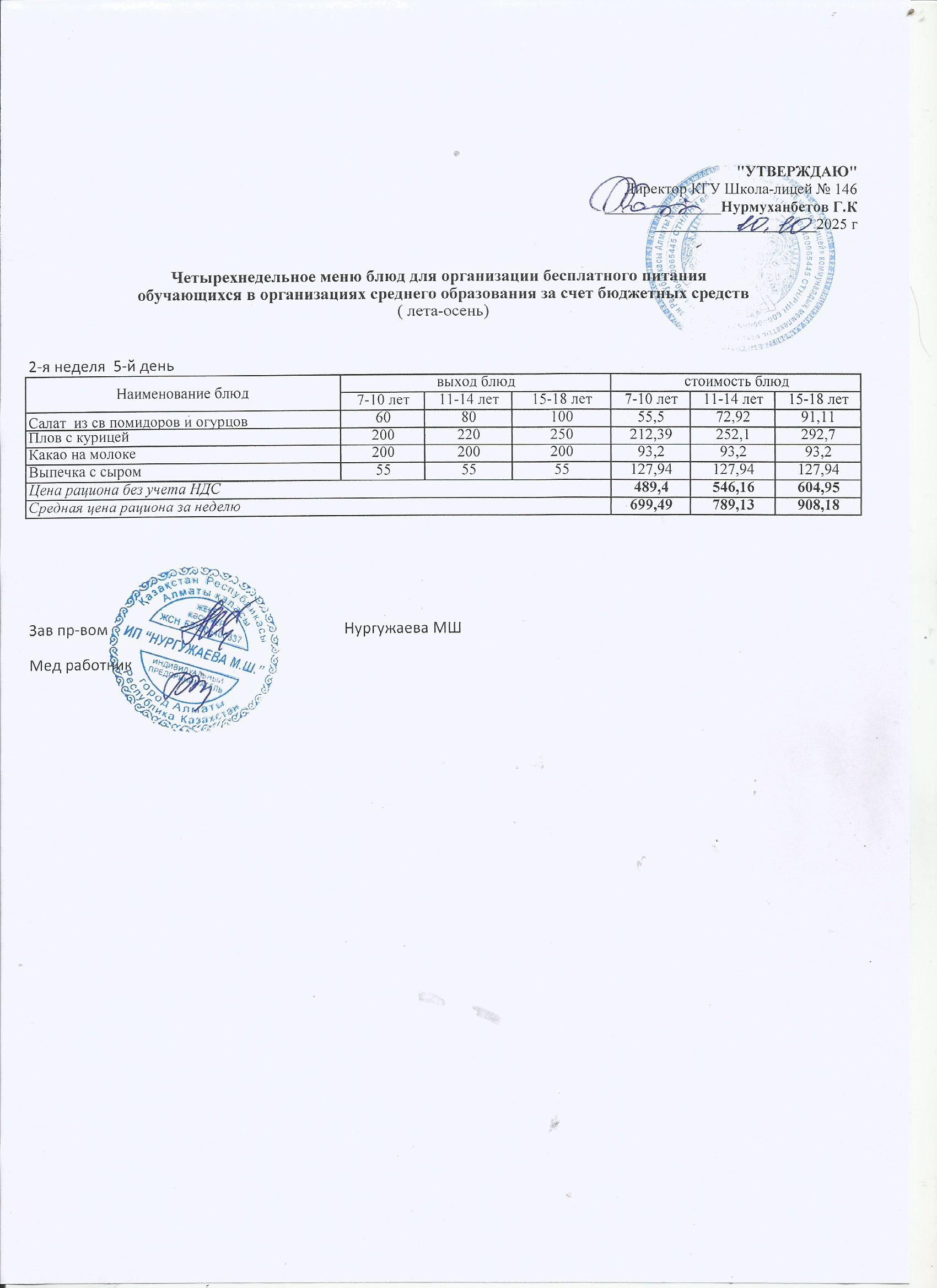 Ас мәзірі (1 апта)