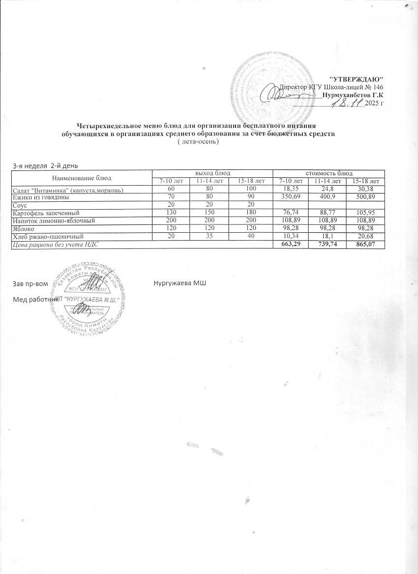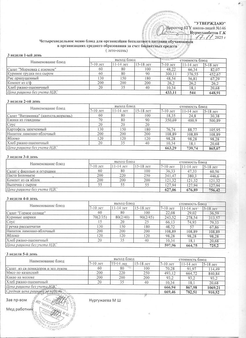» Ас мәзірі (қараша айы, 2 апта)