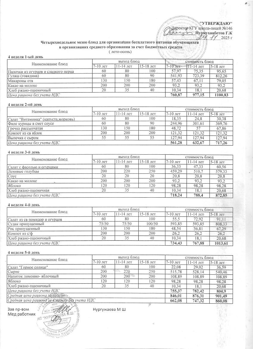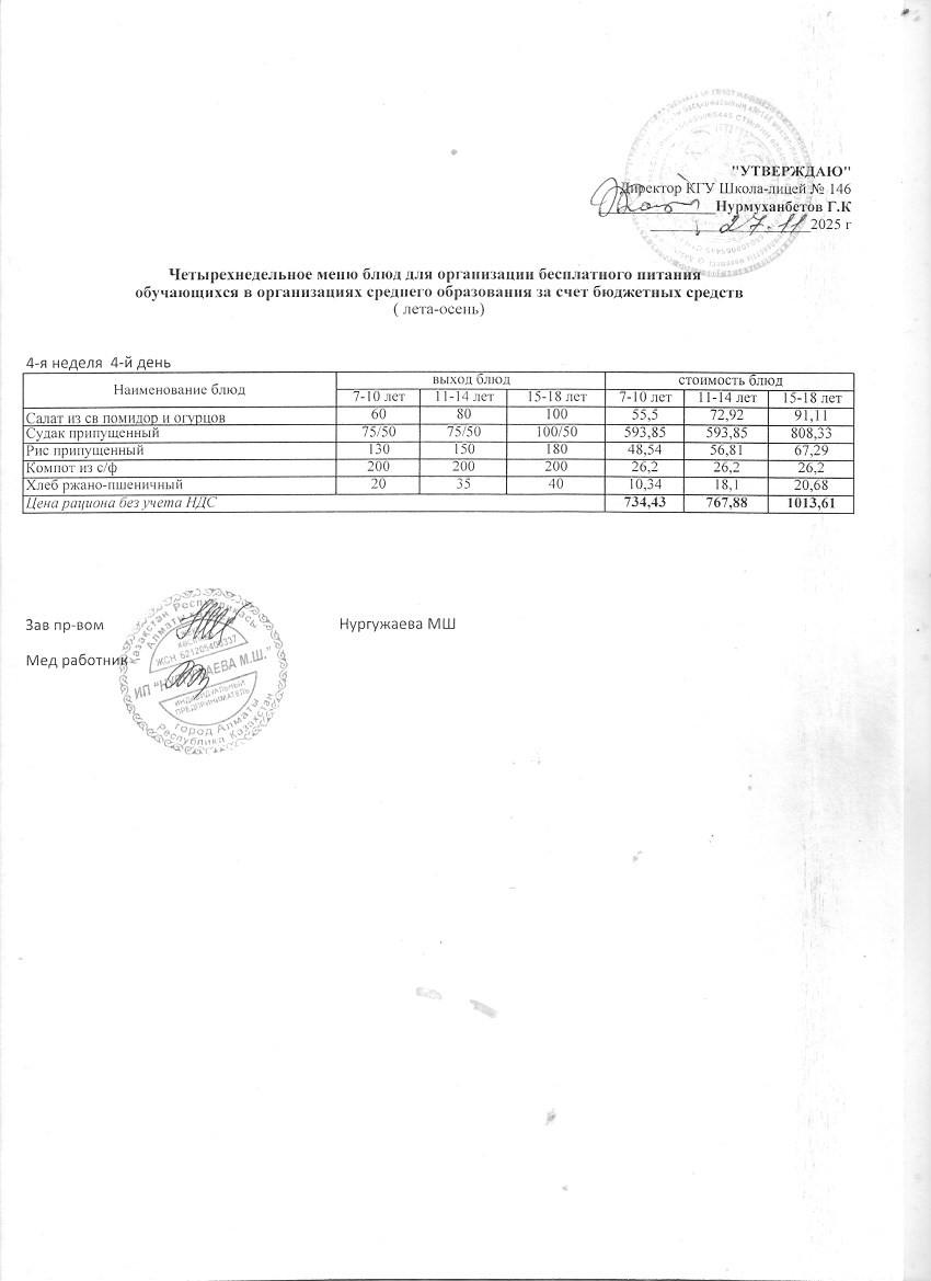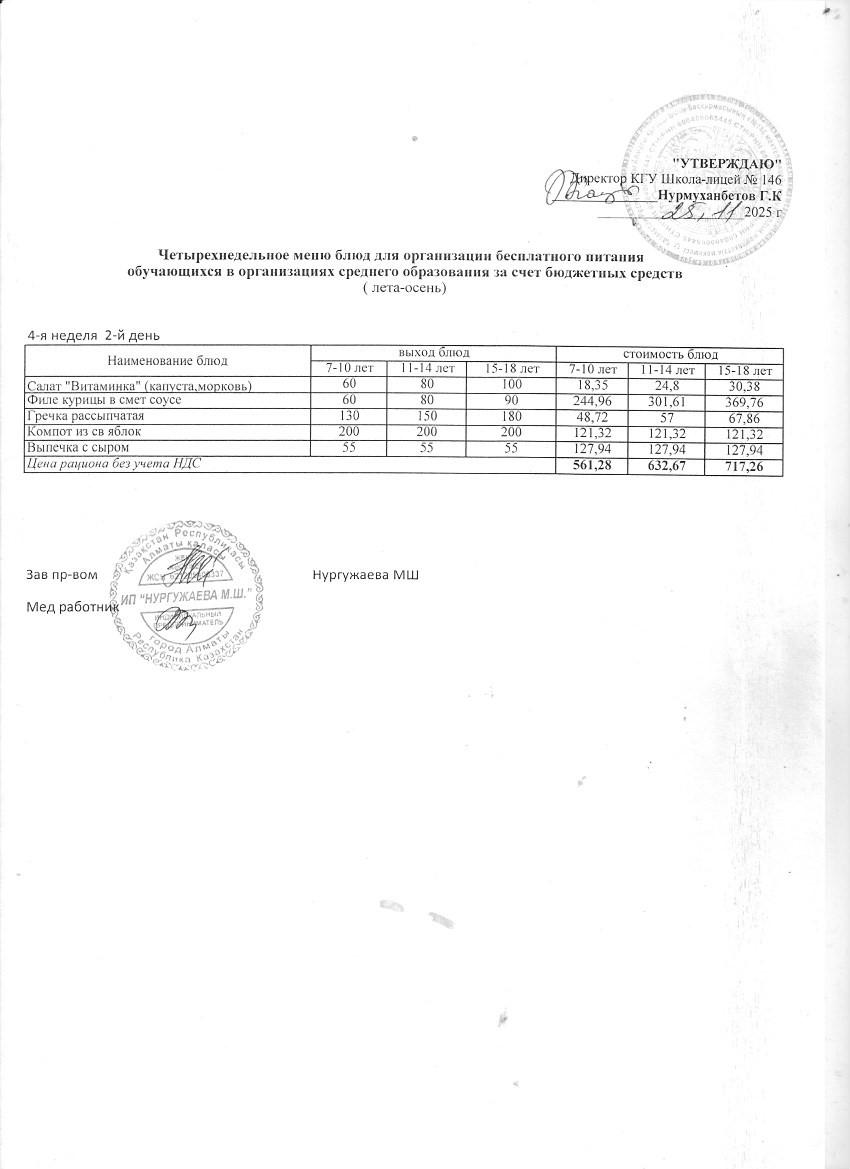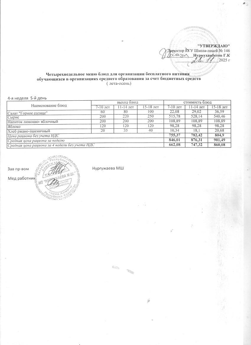 » Ас мәзірі (қараша айы, 4 апта)
