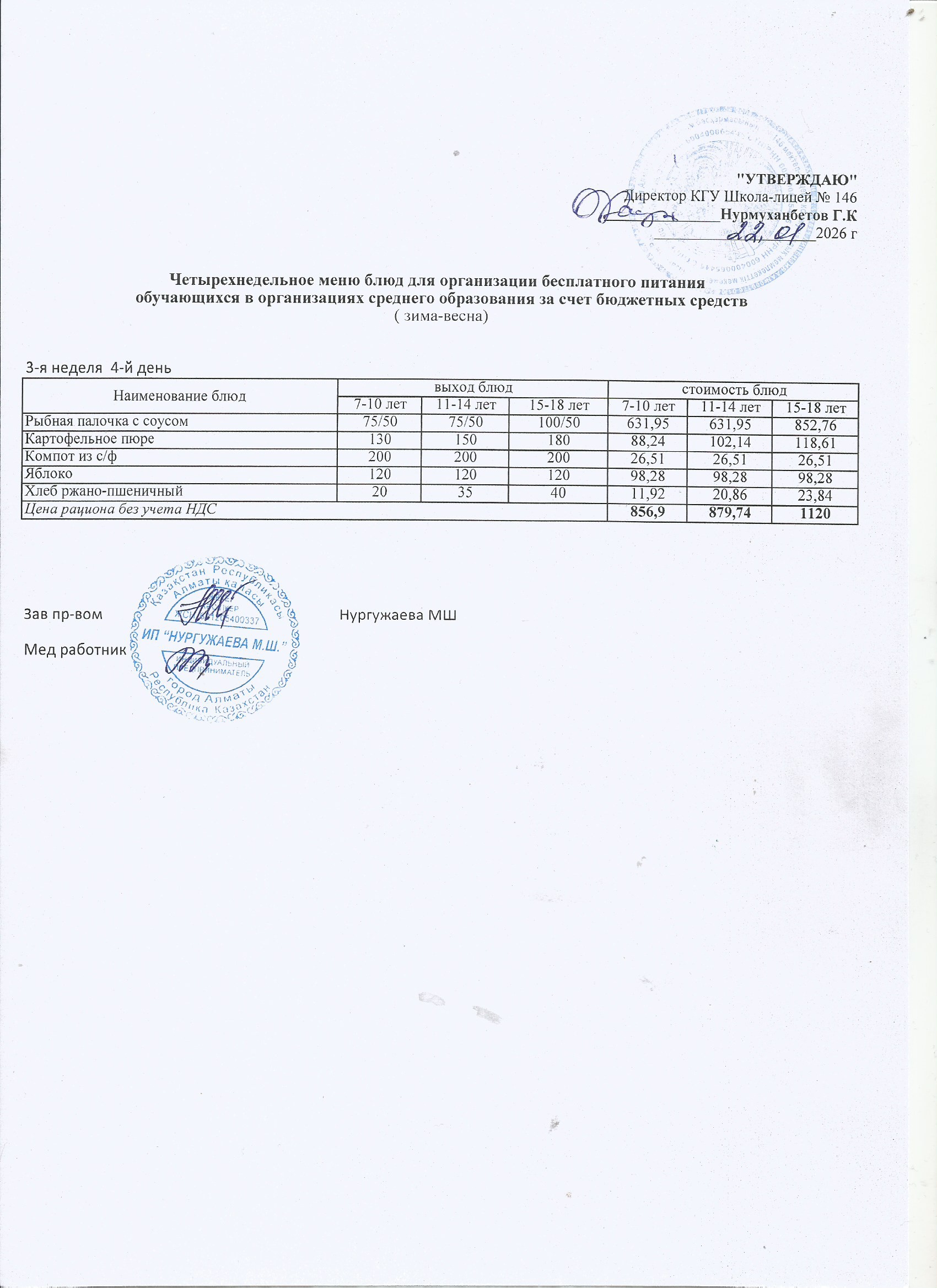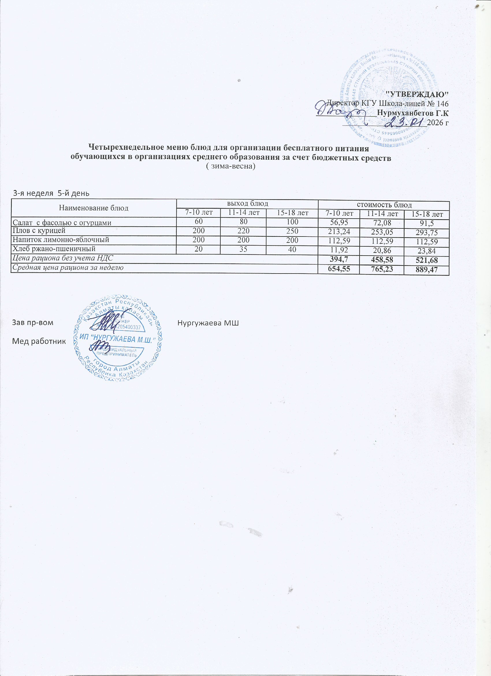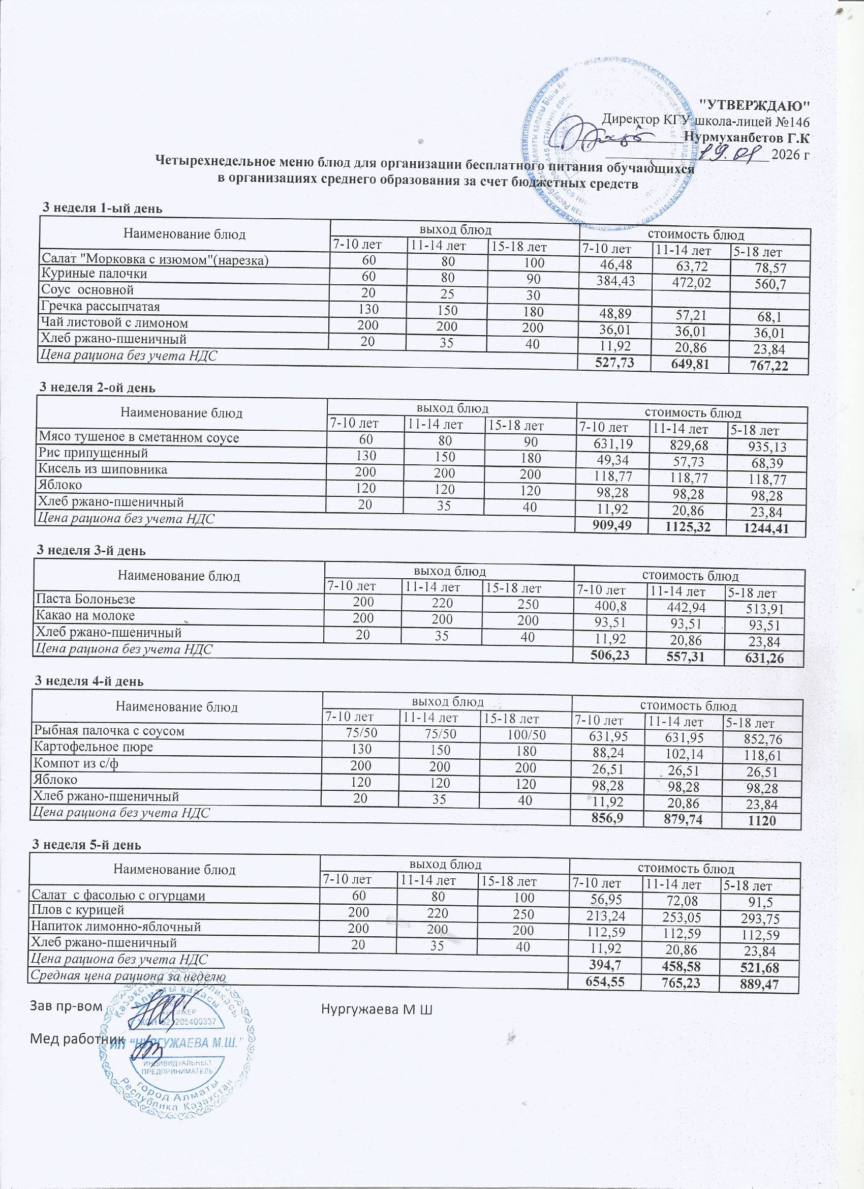 Ас мәзірі (1 апта)
