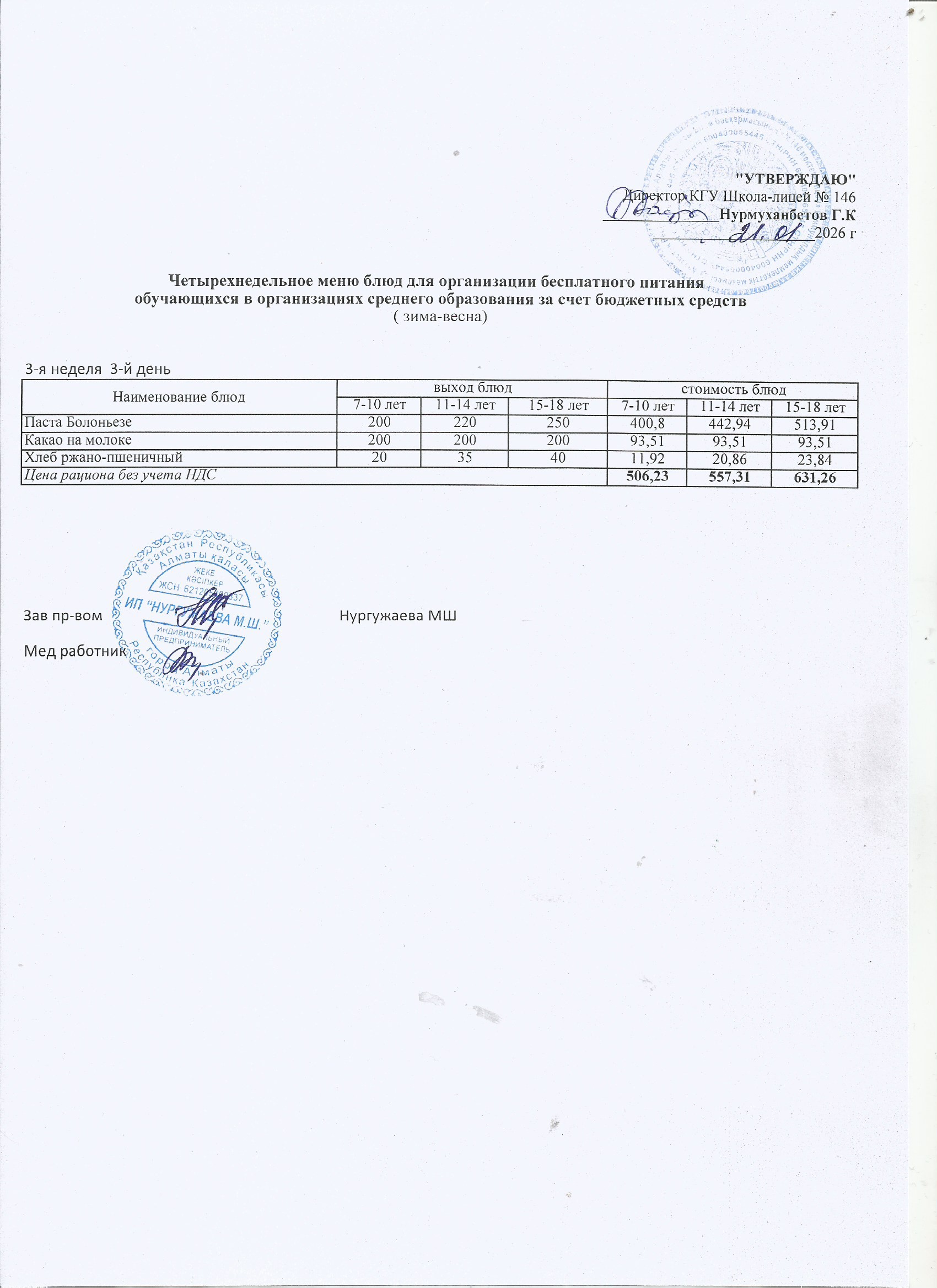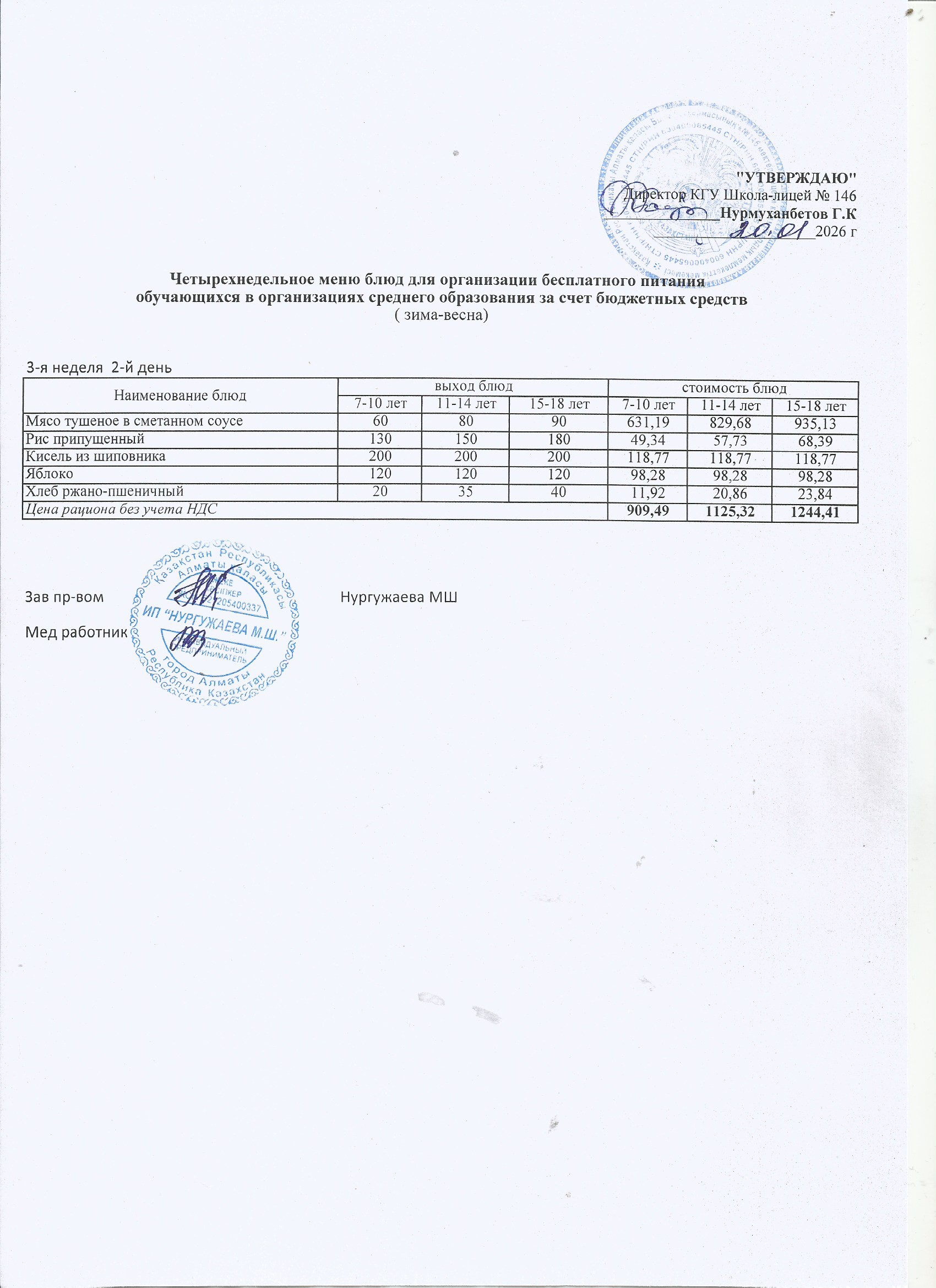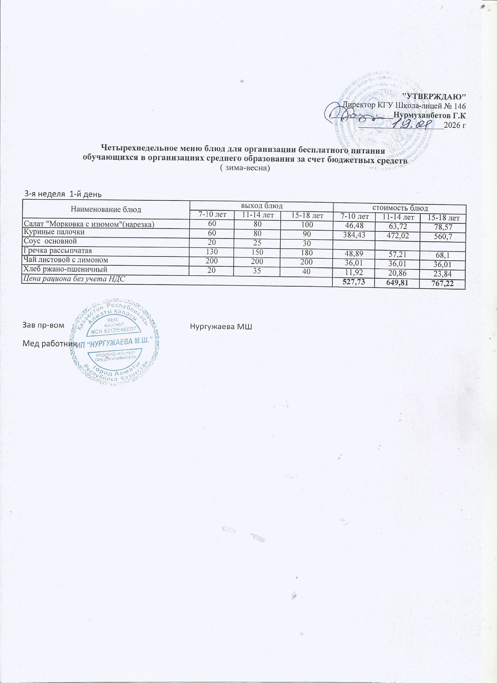 Ас мәзірі (1 апта)