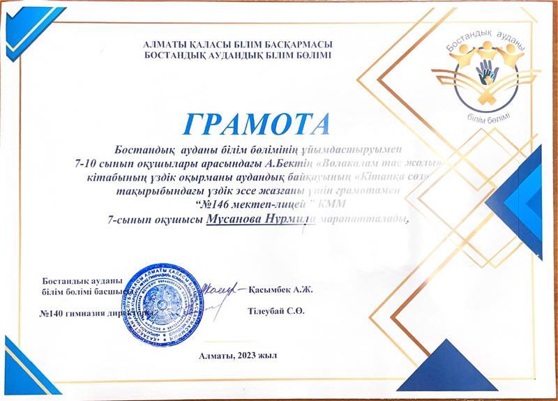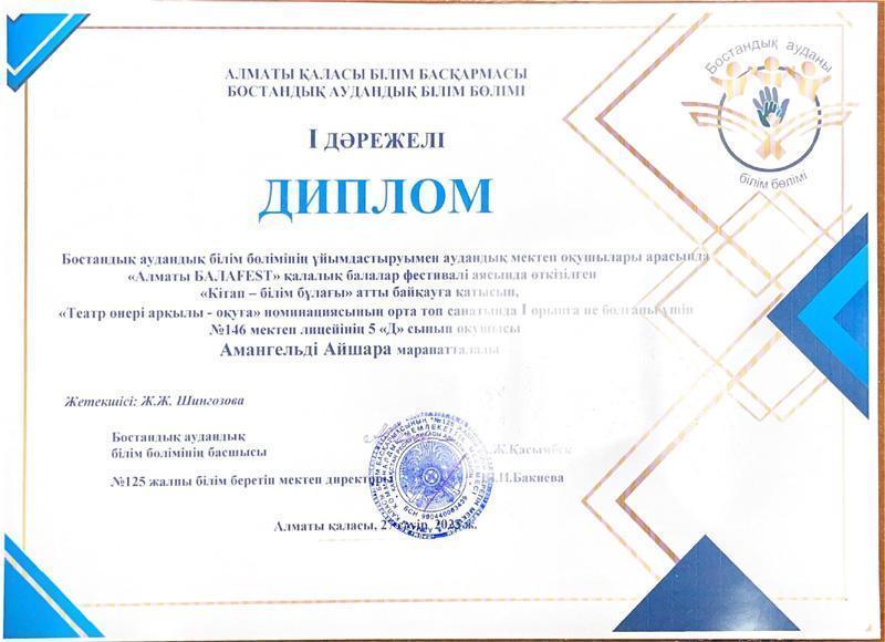 28 апрель 2023 0 1 2 3 4 5 "Алматы БАЛАFEST" балалар байқауы аясында "Кітап - білім бұлағы " бағыты бойынша өткен аудандық жарыстан 1-ші орын иеленді. 27.04.2023 ж. Осы беттің QR-коды:QR-код этой страницы: